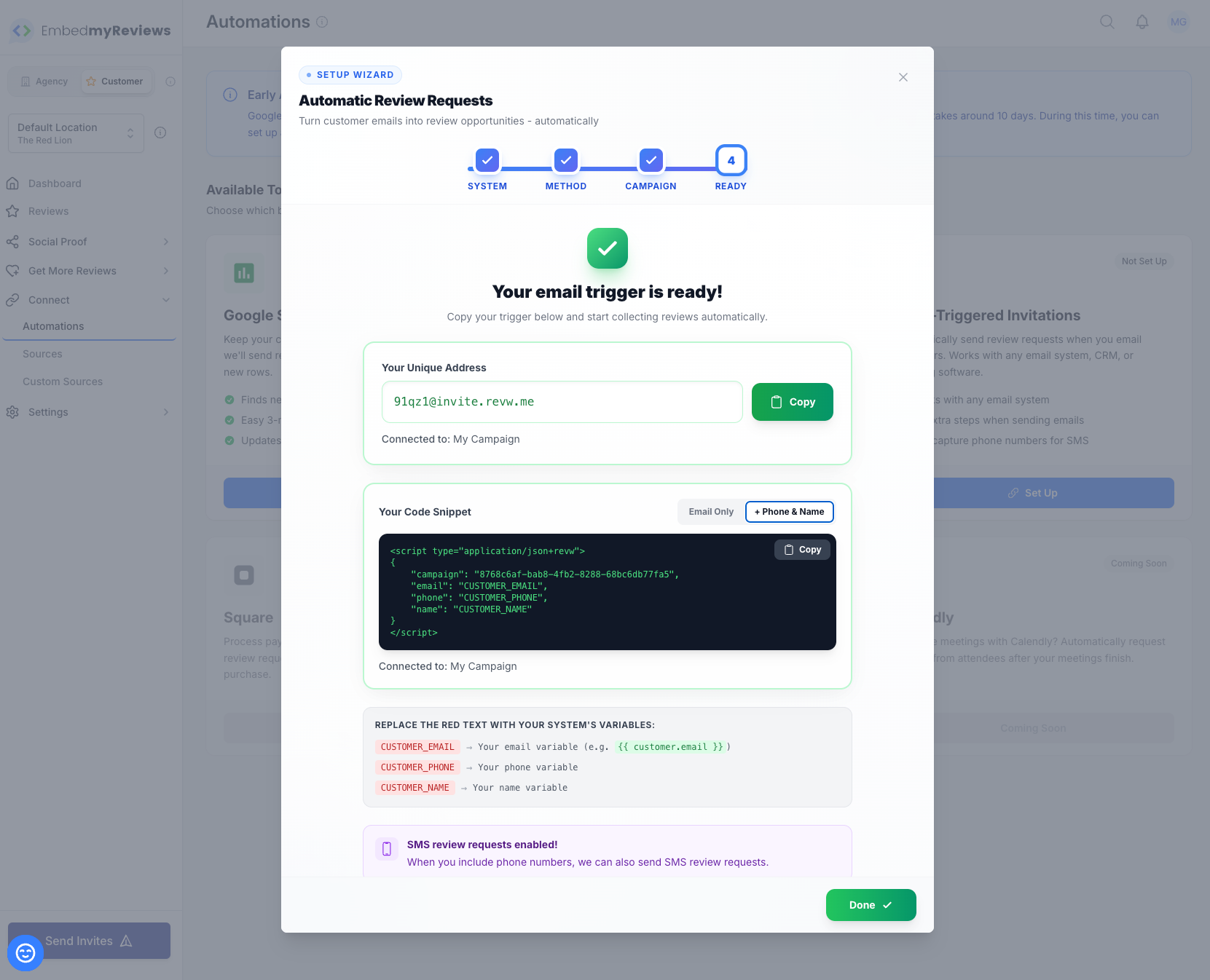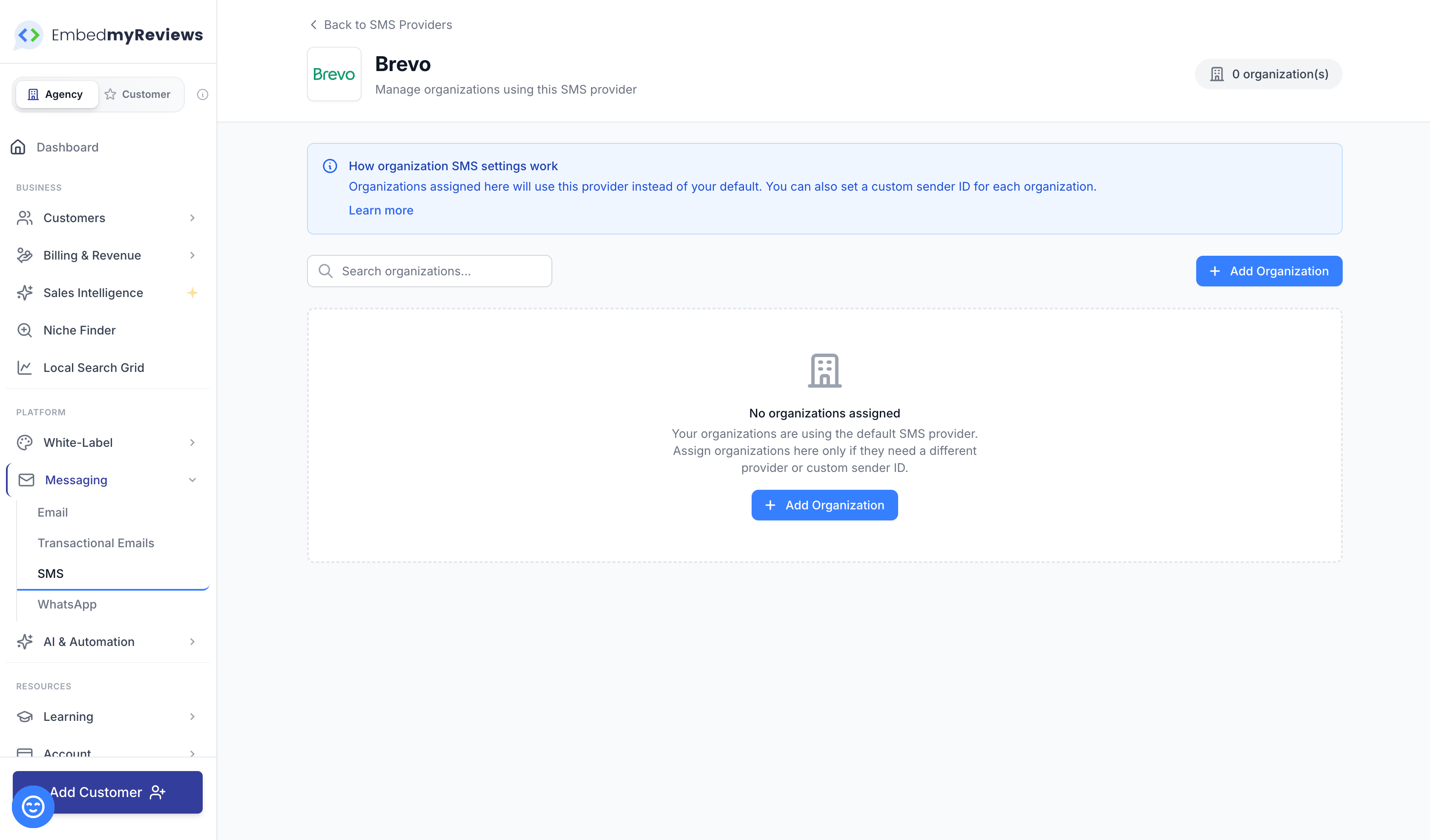 You can now assign specific SMS providers to individual customers, giving you complete control over how SMS review requests are sent while maintaining your credit-based billing model.