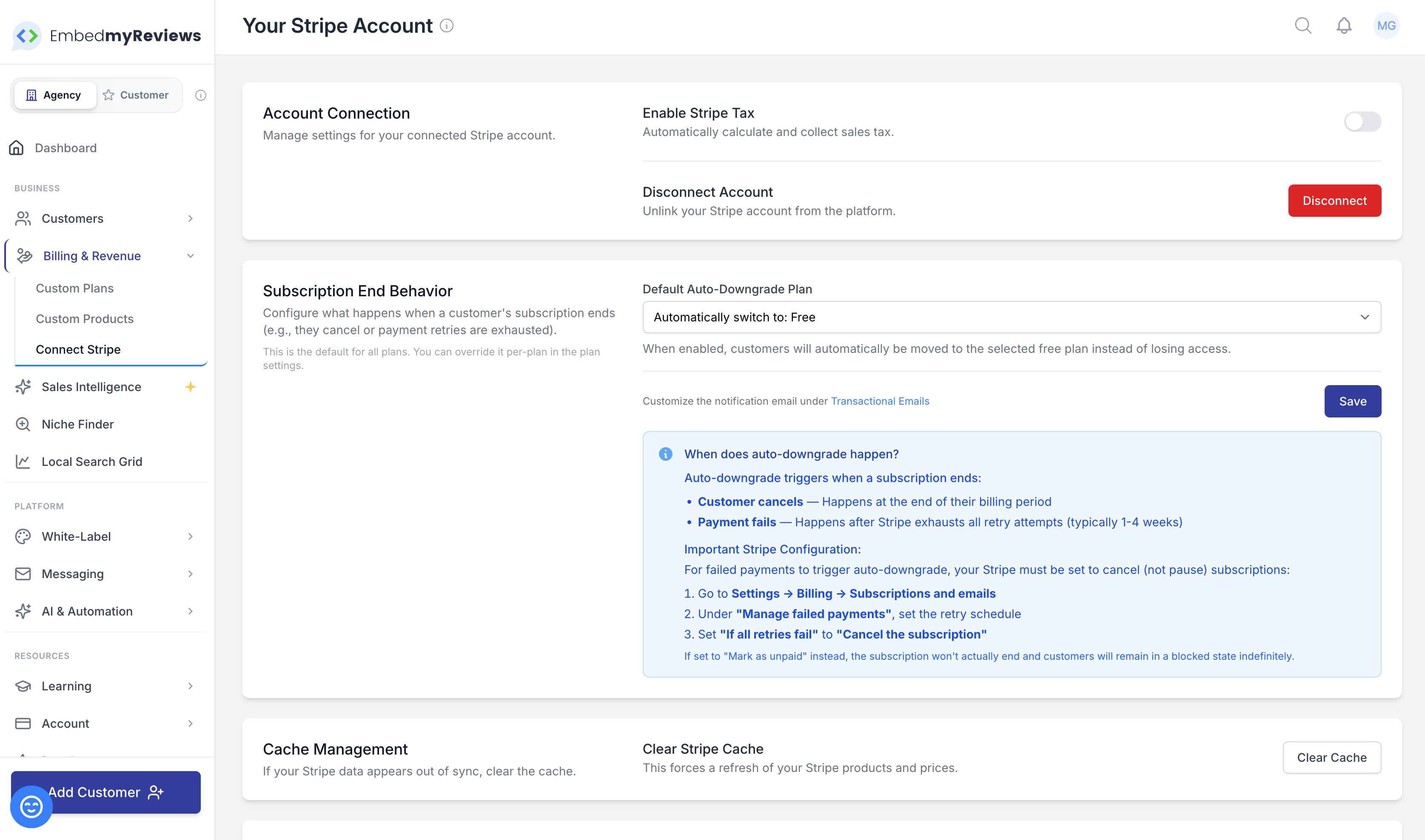 β οΈ Why this matters: If set to "Mark as unpaid" instead, the subscription never officially ends, so the auto-downgrade won't trigger. Customers will be stuck in a blocked state indefinitely.