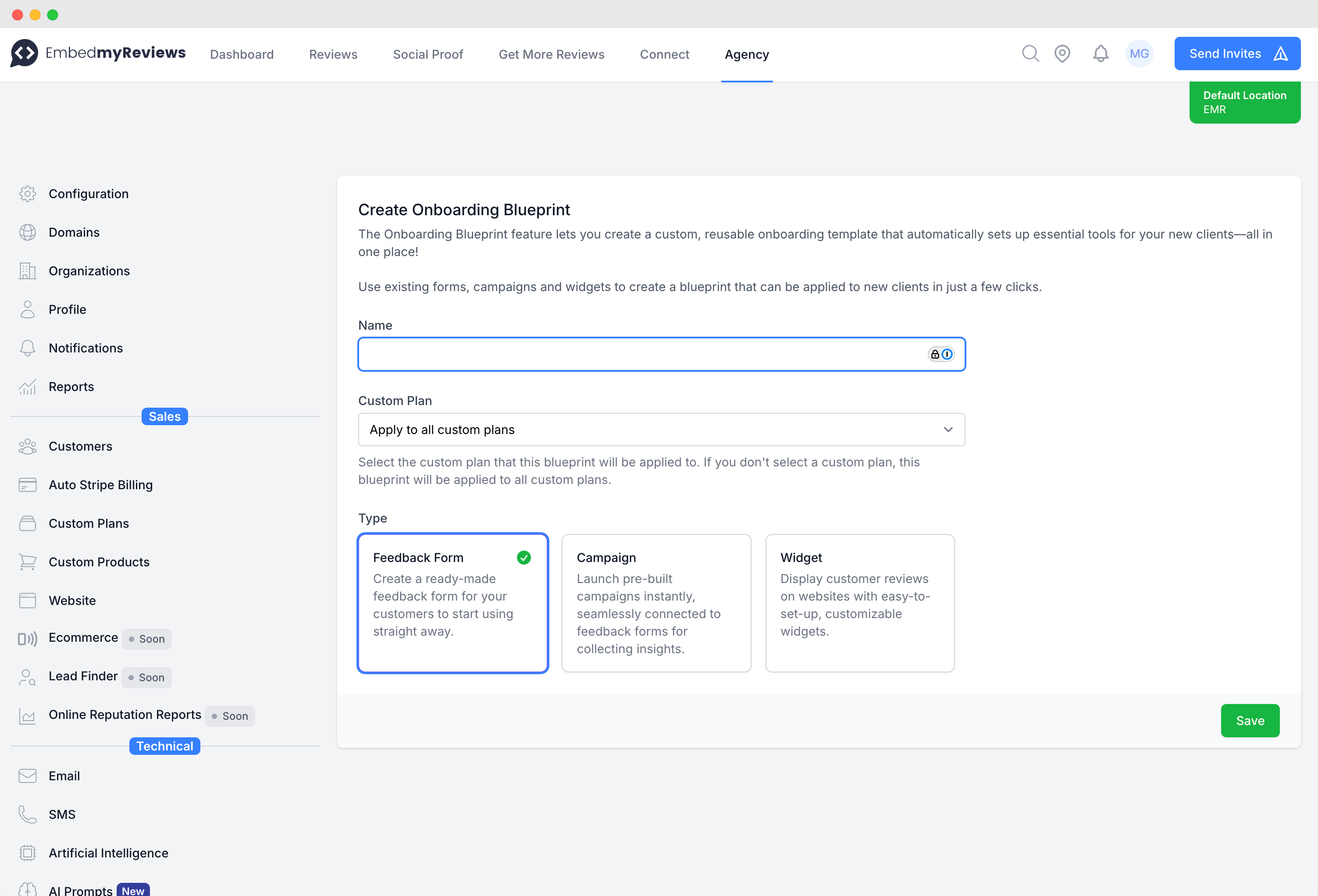 Onboarding Blueprints allow agencies to use existing feedback forms, campaigns and widgets to setup a “blueprint“ which will help customers experience the full value of your platform sooner, enhancing satisfaction and reducing early churn.