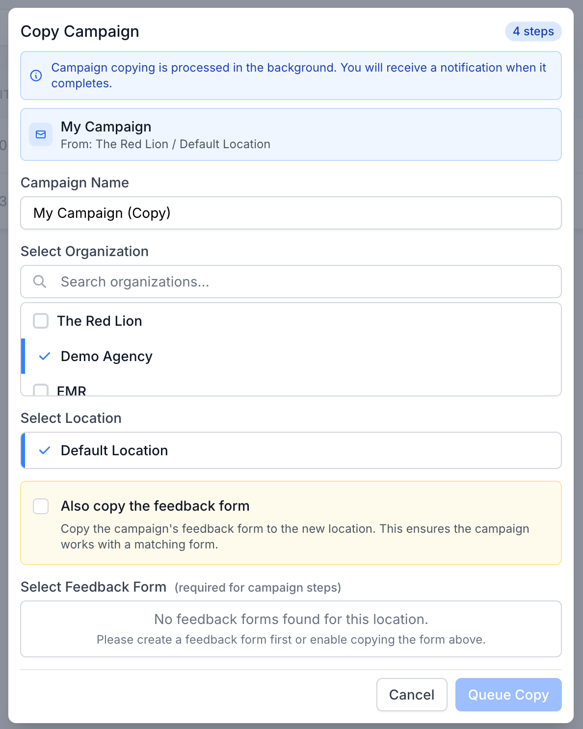 You can now duplicate your best-performing campaigns and feedback forms across different client locations or even the same organization. This saves time and helps you roll out proven setups quickly ~ no need to rebuild everything from scratch!