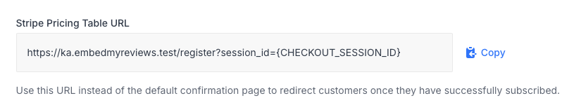 For those using their own website instead of the built-in hosted site and utilise Stripes Pricing Tables feature you can now copy the redirect URL that will redirect your customers once they complete the Stripe checkout. The platform will automatically handle everything from linking to the correct plan and filling in your customers details.