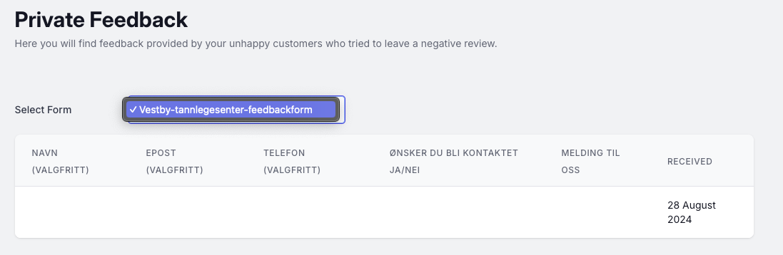 A customer with 10 locations is only able to select on location in the received feedback form drop down menu. Is it supposed to be like that? os is it because that location is the only one that have received a feedback?
