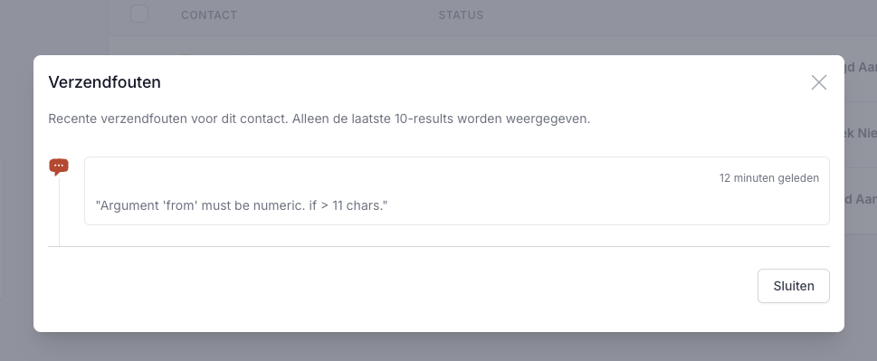 I set up a campaign and chose to use text messaging only. Test sms succeeds, but when I add a contact no sms is sent. See screenshot with error message: "argument 'from' must be numeric.