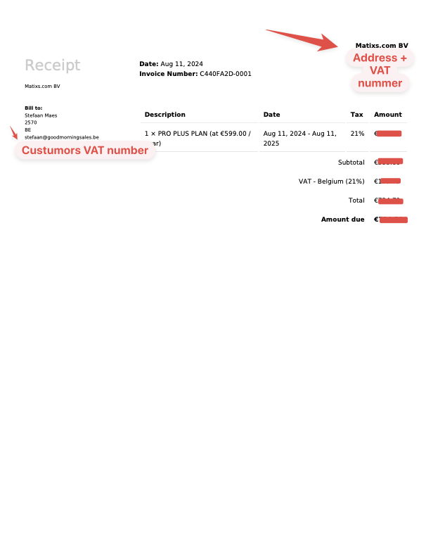 When my customer downloads his invoice it only with my company name, but also my address should be there and the VAT number. This is really mandatory on every invoice. Also the VAT number of my customer must be there.